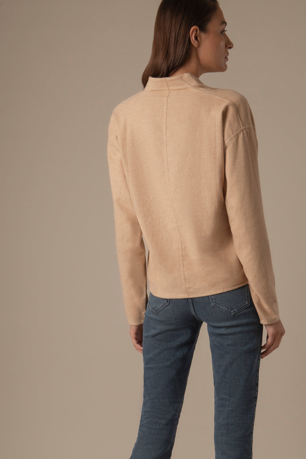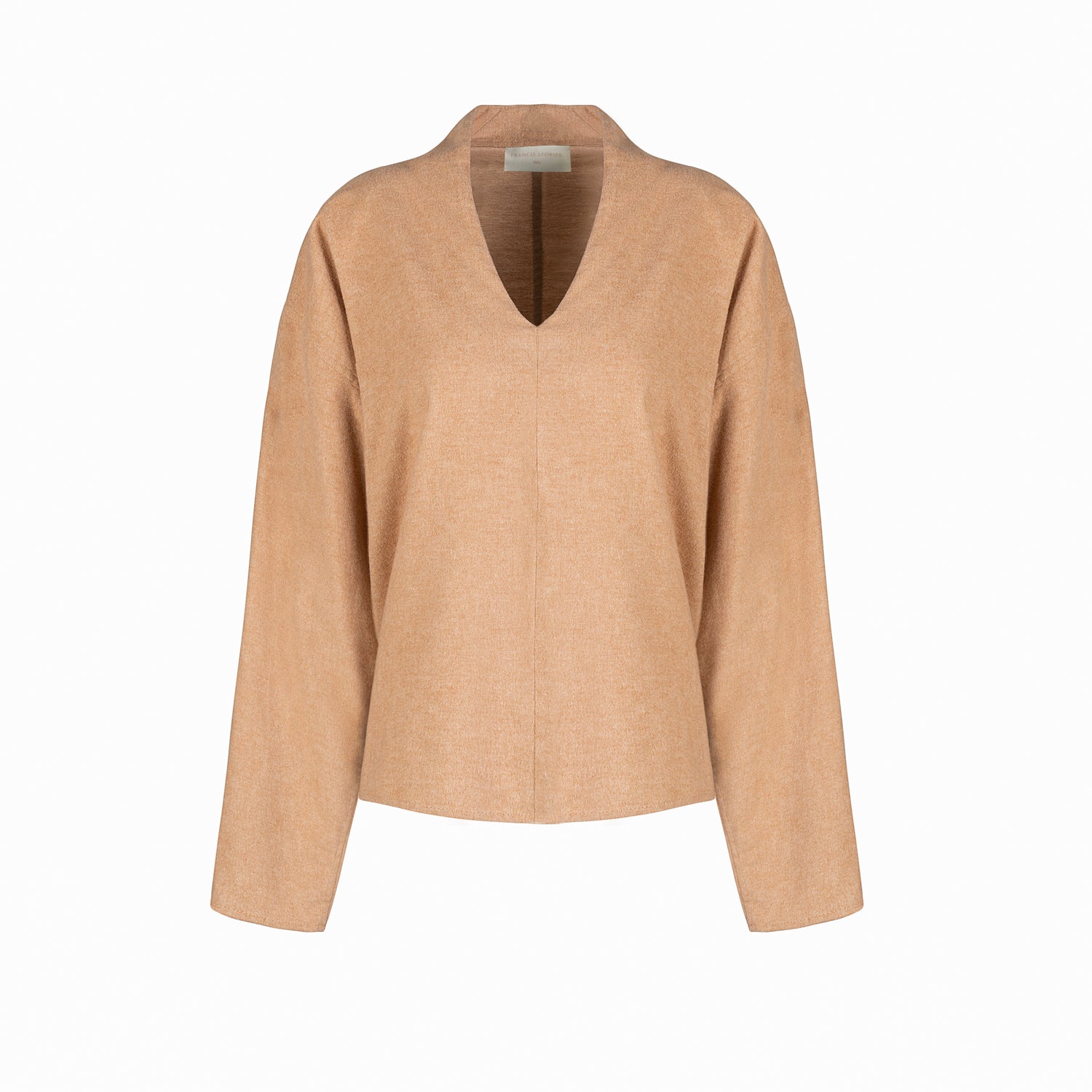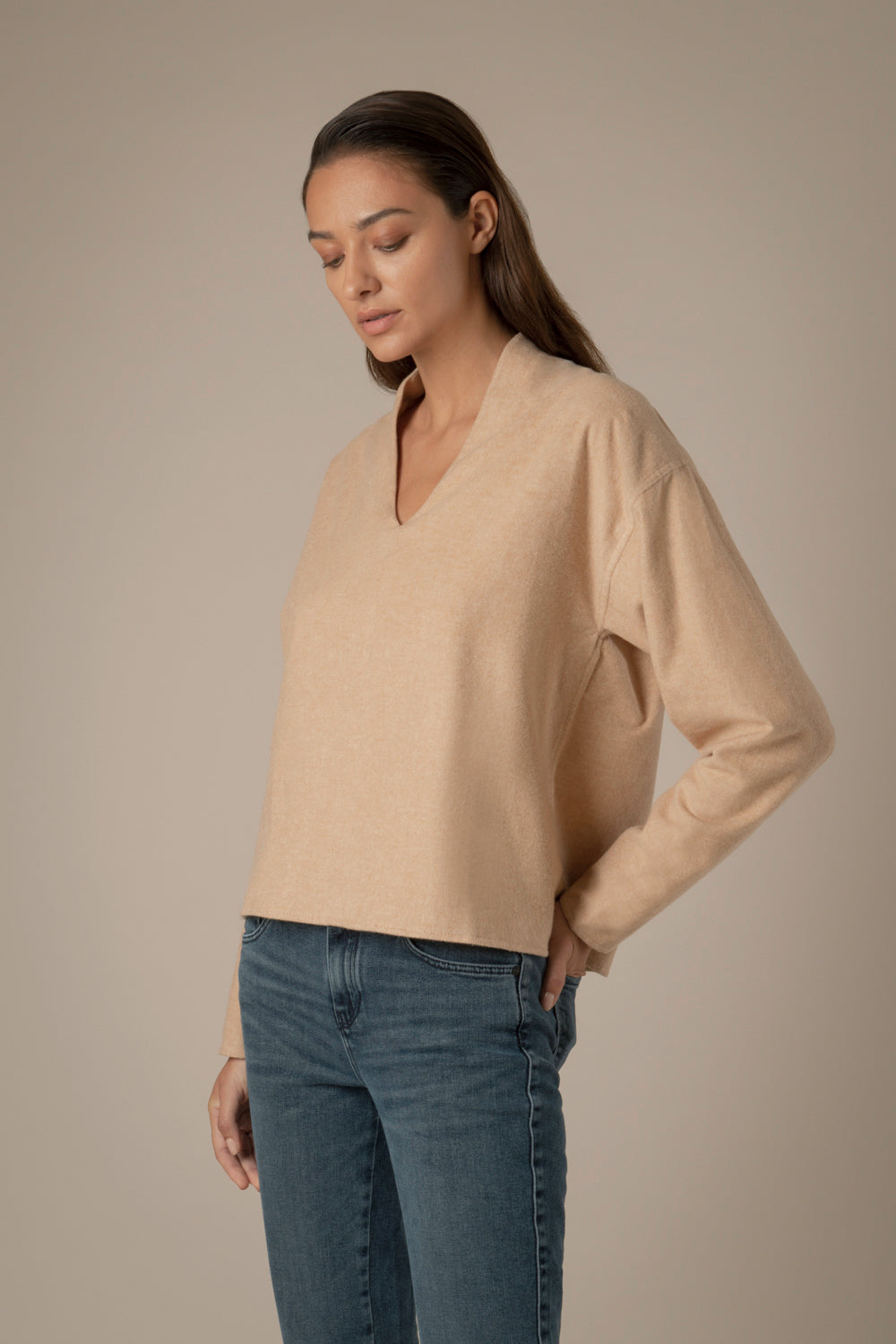 Laid-back and casual V-neck cinnamon shirt in a light and soft brushed organic cotton flannel